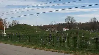 The site is located in Piketon, Ohio. As of 1848, the Chillicothe Turnpike traveled through the site and a cemetery was built upon the remains of a collection of mounds.[4] The cemetery, named Mound Cemetery, as pictured to the right, remains in place today.[3]