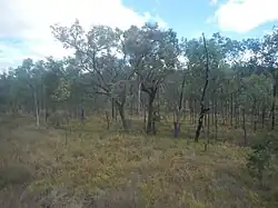 The Drummond Range forms the western part of the locality. A number of creeks rise in the slopes of the range and flow variously west and north, all eventually becoming tributaries of the Belyando River within the North East Coast drainage basin.[6]