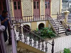 Analysing the architectural aspects of the mansion, "there is a certain freedom in the design of the facade, which already suggests eclecticism. The composition in full arches with straight or depressed lintels, the notched or slightly projecting iron balconies, the tiled cladding are found in buildings from the colonial and imperial periods, but in this case a wooden cut-out is added." It was also noted that "the tiles on the facade are, from the point of view of color and composition, among the most beautiful of the period, and there are only two similar examples in the city, both poorly preserved."[17]