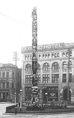 In March 1923, the totem pole was moved 25 feet (7.6 m) south to make room for a new sidewalk in Pioneer Place and the widening of First Avenue.[29] In 1958, Seattle's professional ice hockey team was renamed the Seattle Totems.[30]