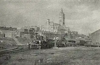 The tracks that the PVRR operates on were originally constructed by the New Haven and Northampton (also known as the Canal Line) from 1842 to 1856 as part of the company's line between its namesake cities. The branch line connecting Westfield and Holyoke was built in 1871. Both lines passed to the New York, New Haven and Hartford Railroad (reporting mark NH) when it took control of the New Haven and Northampton in 1887.[2] The bankrupt New Haven was included in the newly formed Penn Central Railroad on January 1, 1969, which abandoned the tracks north of Southampton. Penn Central promptly went bankrupt in what was at the time the largest corporate bankruptcy in U.S. history, and was folded into government created Conrail in 1976, which became the new operator.[2] Conrail ended operations on the tracks around Westfield in 1982, claiming the two lines were no longer profitable to operate. At this time, Pinsly Railroad Company purchased both from Conrail for under $300,000, along with making a guarantee to the state of Massachusetts to commit $800,000 in spending to track repairs and improvements within four years of the purchase.[3] Upon purchasing the two lines, Pinsly began railroad operations on the line under the Pioneer Valley Railroad name.