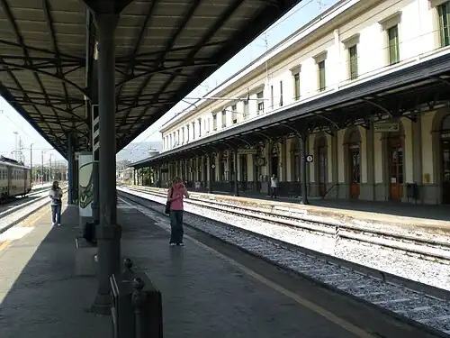 Pistoia railway station is the station of Pistoia in Piazza Dante. It is on the Viareggio–Florence railway, which connects Florence and Viareggio and it is at the beginning of the Porrettana railway to Bologna.[1]