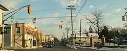The intersection at Broadway leads to Uptown Pitman, lined with shops, restaurants, and bakeries