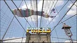 Pixels is a 2010 French animated short film written and directed by Patrick Jean. It is about an invasion of New York City by classic 8-bit video game characters, such as those from Space Invaders, Pac-Man and others.