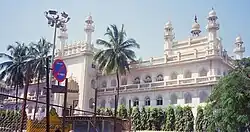 The Jumma Masjid located on the Old Poor House Road in the Cantonment area of the city is also said to be one of the oldest mosques, built by Haji Abdul Quddus in the early 19th century. While the raised prayer hall of the mosque has granite pillars, the building as such is a brick and mortar structure with ornate jali work and floral motifs in plaster on the facade.[25][26] The granite pillars were bought from Tipu Sultan's palace in Srirangapatna.