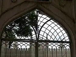 St. Mary's Basilica had a humble beginning as an attached hut in the 17th century, built by Tamil Christian migrants from Gingee. The Shrine was then known as 'Chapel of Kanikkai Madha' and was located in their village where rice was grown. The rice grown in the village had a distinct white colour, and hence the settlement came to known as Bili Akki Palli or colloquially known as Blackpally (now known as Shivajinagar).[34] However, according to well known historian S K Aruni, Blackpally could have been named after John Blakiston (1785–1867), who designed the layout of the Bangalore Cantonment.[35] With the establishment of the cantonment at Bangalore, Jean Dubois led a mass for both Europeans and Indians in 1799, after the fall of Seringapatam. In 1811, Jean Dubois built small chapel along with residence for the Catholic priests. Later Andreas, a priest from Pondicherry of Indian origin, expanded the church building in the shape of a cross. However this church was torn down during the communal riots of 1832, and troops had to be called in to protect the settlement for many months.[34][36][37][38] The current form of the majestic Gothic-style church (pictured) is credited to L. E. Kleiner. It was consecrated on 8 September 1882 by Bishop Jean-Yves-Marie Coadou, the vicar apostolic of Mysore. Over the years, the church of St. Mary's at Blackpally became a parish and was elevated to the status of minor basilica in 1973 through an order by Pope Paul VI (The church was the sixth church in India to be elevated to this status). Stained glass windows and multiple columns with a rich Corinthian capital support the stately arches of the Church. An annual 9 day Novena is held between 30 August and 7 September, with Mass being offered in English, Kannada and Tamil.[34]