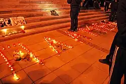 Plamen Goranov (Bulgarian: Пламен Горанов; 20 October 1976 – 3 March 2013) was a Bulgarian photographer[1] and mountain climber,[2] and a Varna-based local protest leader of the 2013 Bulgarian nationwide protests. He became a symbol of the Bulgarian social protest movements and a catalyst for nationwide protests and government resignations when on 20 February 2013 he set himself on fire in front of the Varna municipal building. He died from his injuries in a local hospital on 3 March, Bulgarian Liberation Day, a Bulgarian national holiday celebrating liberation from five centuries of Ottoman rule.[3][4] Goranov protested against the organized crime group TIM and the TIM-controlled Varna mayor Kiril Yordanov.[5][6]