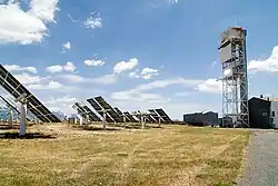 Over 20,000 m2 of mirrors are installed on a 400,000 m2 (99-acre) site. There are several techniques tested under practical conditions, mainly solar thermal power plants. Hydrosol-2 is a solar power tower and a set of heliostats to collect the solar thermal energy.