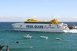 There are three ferry lines to choose from in which to make the journey. Firstly there is the Fred. Olsen Express ferry, called the 'Bocayna Express' which makes the trip in 20 minutes. The second ferry is the Naviera Armas, called the 'Volcan de Tindaya', which makes 7 daily crossings each way, each one being of 35 minutes duration. The third is the 'Princesa Ico Glass Bottomed Boat'.