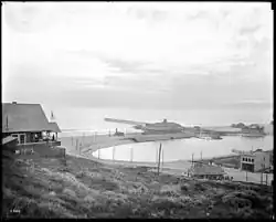 In the 1870s, Playa Del Rey was the location of the first attempt at a dredged harbor in Santa Monica Bay. Under contract with the Atchison, Topeka & Santa Fe Railroad, Moye Wicks' syndicate spent $300,000 to dredge Port Ballona Harbor, for shipping to the Orient.[3] Within three years, winter waves brought flooding, but what remained of man's early efforts became the Del Rey Lagoon, now a municipal public park.[4]