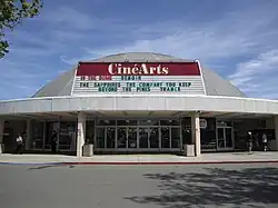 On February 21, 1967, Century 21 Theaters opened an 895-seat dome theater between Monument Boulevard and Hookston Road, just off I-680. The futuristic dome-topped cinema became an iconic landmark for the newly incorporated city.[10] The theater was designed by prolific Bay Area architect Vincent G. Raney. It had a distinctive 50-foot-high domed ceiling and oversized curved screen. The theater was initially built to showcase the Cinerama widescreen process developed in the 1950s. The screen was later updated to standard flat-screen.[11] In 1973, four additional single-screen auditoriums were added to the front of the building. Renamed as Century 5 Theatres, it continued to be known familiarly as the Dome.[12]