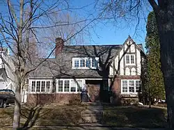 This last house is the only Tudor Revival in the district. By the time that style came into fashion, Pleasant Hill was full. 210 S. Vine must have replaced an earlier house, or been squeezed in when a large lot was broken into parcels. For the same reason, later styles like ranch are not found in this district, but many are found on Marshfield's west side beyond Oak Avenue, which was developed later.[22]