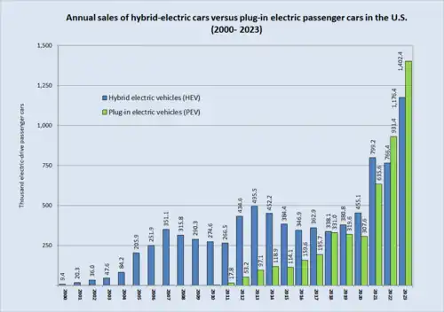 - ^ Cobb, Jeff (9 February 2017). "There Are Now More Plug-in Cars For Sale In the US Than Hybrids". HybridCars.com. Retrieved 10 February 2017.