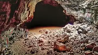 Pluto's Cave (or Pluto Cave) is a partially collapsed lava tube on the northern outskirts of Mount Shasta in the Klamath National Forest.[2] Its main entrance is located close to the 99-97 Cutoff c. 12 miles (19 km) North-east of Weed and c. 14 miles (23 km) East-southeast of Grenada. The tube is roughly 190,000 years old, which is quite old for a lava tube, as they normally collapse quickly (in geological terms), having ceilings only a few metres thick.[3] However, Pluto's Cave is located in a semi-arid climate, where erosion is restricted, which contributes to its survival.