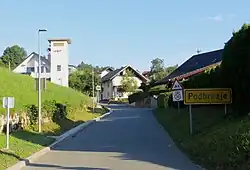 Podbrezje (pronounced [pɔdˈbɾeːzjɛ]; German: Birkendorf[2]) is a village in the Municipality of Naklo in the Upper Carniola region of Slovenia. It includes the hamlets of Dolenja Vas (Slovene: Dolenja vas, German: Unterbirkendorf[2]), Srednja Vas (Slovene: Srednja vas, German: Mitterbirkendorf[2]), Britof (German: Freithof), and Podtabor (German: Tabor),[2] which were separate settlements before the Second World War. The settlement lies on a terrace on the left bank of the Sava River known as Dobrava. Since the early 19th century Podbrezje has been known for its orchards, which can still be seen around the village.[3] After the Second World War, a Yugoslav labor camp for political prisoners operated in Podbrezje.[4]