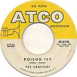 "Poison Ivy" is a popular song by American songwriting duo Jerry Leiber and Mike Stoller. It was originally recorded by the Coasters in 1959.[1] It went to No.1 on the R&B chart, No.7 on the Billboard Hot 100 chart,[2] and No.15 in the UK. This was their third top-ten hit of that year following "Charlie Brown" and "Along Came Jones".