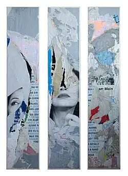 Brändle follows in the footsteps of the affichistes working with posters from her immediate environment but also collecting material on her travels which provide the bases of her time- and culture-specific artworks. Her work involves both small fragments and large-scale pieces ranging between pop art and abstraction.