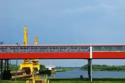 In 1937, the synthetic fuel plant Hydrierwerke Pölitz AG was founded by IG Farben, Rhenania-Ossag, and Deutsch-Amerikanische Petroleum Gesellschaft[8] which by 1943 was producing 15% of Nazi Germany's synthetic fuels, 577,000 tons.[9] The plant derived its workforce from an adjacent system of camps (Pommernlager, Nordlager, Tobruklager, Wullenwever-Lager, Arbeitserziehungslager Hägerwelle, Dürrfeld Lager) plus a ship moored on the Oder River serving as a camp (Umschulungslager Bremerhaven). In addition, a subcamp of the Stutthof concentration camp was located in Pölitz, whose prisoners were mostly Poles, Lithuanians, Latvians, Russians, and Germans, but also Frenchmen, Yugoslavians, and Greeks.[10] Up to 28,000 laborers were placed in all the camps.[10] Exhausting labor, hunger, abuse, and executions resulted in a high death toll in the subcamp of Stutthof, and there were also several escape attempts.[10] On 17 April 1945, the prisoners were sent on a death march, whereas the most ill and unable to march were massacred on 25 April 1945.[10]