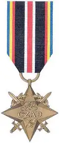 ![]() ![]() ![]() ![]() ![]() ![]() Campaign stars for Afghanistan, Iraq, Chad, Congo, Mediterranean Sea and Air Crew (with clasp). | |