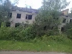 Poliske (Ukrainian: Поліське) or Polesskoye (Russian: Полесское) is an abandoned settlement and former urban-type settlement in the Chernobyl Exclusion Zone, part of Kyiv Oblast, Ukraine. It is located on the Uzh River and was an administrative center of Poliske Raion (district). However, later the town was taken out of a registry as it was completely depopulated being located in the Zone of alienation. Currently around 20 people live there, so called samosely ("self-settlers").[1]