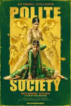 Polite Society is a 2023 British martial arts action comedy film written and directed by Nida Manzoor (in her feature film directorial debut). The film stars Priya Kansara, Ritu Arya, Nimra Bucha, Akshay Khanna, Seraphina Beh, Ella Bruccoleri, Shona Babayemi, Shobu Kapoor, and Jeff Mirza.