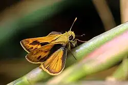 Polites vibex, or the whirlabout,[2] is a grass skipper in the family Hesperiidae. The whirlabout gets its name from the landing and take off flight patterns of the adult – a circular or vortex or whirling motion.[3] It is resident from the southeastern U.S. and West Indies to eastern Mexico through the tropics down to Argentina. During the warmer North American months, it can sometimes be found as far north as Ohio, Connecticut, and northeast Iowa.