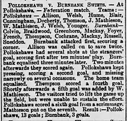 - ^ "Football". Rutherglen Reformer: 3. 25 April 1884.