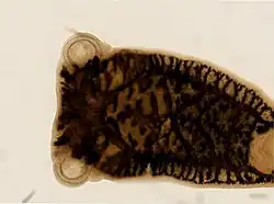 - ^ Williams, J.B. (1995). "Phylogeny of the Polystomatidae (Platyhelminthes, Monogenea), with particular reference to Polystoma integerrimum". International Journal for Parasitology. 25 (4): 437–441. doi:10.1016/0020-7519(94)00138-E. PMID 7635619.