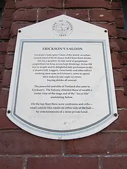 - ^ Koffman, Rebecca (March 11, 2014). "The future of Old Town Chinatown: Historic saloon gets new life, new use in gritty neighborhood's overhaul". The Oregonian. Portland, Oregon. Retrieved September 7, 2019.