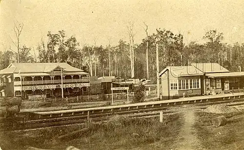 Pomona railway station is a railway station on Factory Street, Pomona, Shire of Noosa, Queensland, Australia. It is on the North Coast railway line serving the town of Pomona. It was designed by the Office of the Chief Engineer of Queensland Rail and built and opened in 1891 by Fitzwilliam Williams.[1] Originally called Pinbarren Siding from 1891, the location was renamed to Pinbarren railway station in 1897 and then to its current name Pomona railway station in 1900.