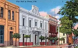 The Ponce City Hall (Spanish: Casa Alcaldía de Ponce) is a historic city hall in Ponce, Puerto Rico. It is located it the center of the city, on Calle Degetau, across from Plaza Degetau in the Ponce Historic Zone. The building serves as the seat of the executive branch of government of the Autonomous Municipality of Ponce, including the office of the mayor of Ponce. Built in 1840, it is the oldest colonial building in the city.[2] The building was listed on the U.S. National Register of Historic Places in 1986 as Casa Alcaldía de Ponce-City Hall.[1]