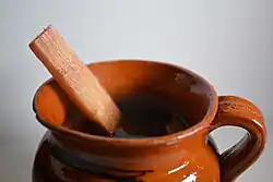 The traditional ingredients are tejocotes, pilloncillo (raw sugar cane), and cinnamon. The fruits of guava, tamarind, raisins, prunes, and oranges are common additions.[4] Ponche Navideño is served hot or warm,[3][6] and may be garnished with a stick of sugar cane.[4][7] When a shot of alcohol (popularly rum) is added to the punch, it is called ponche con piqueto ("punch with a sting").[1][2][8]