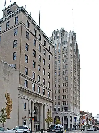 • Masonic Temple (1 Lafayette): A 1923 building of unique, Michigan-centric design, with double and triple-arch windows each set within a slightly recessed archways.