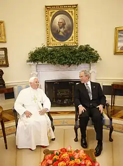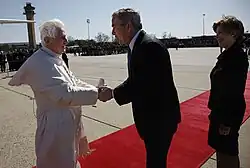- ^ Parker, Jennifer; Blakemore, Bill (April 15, 2008). "Bush Embraces Pope Benedict XVI". ABC News. Archived from the original on May 18, 2015. Retrieved August 17, 2011.