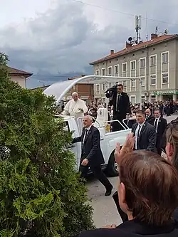 - Pope Francis announced in his Angelus address on 15 June that he would make a one-day visit to the city of Tirana in Albania. He said: "With this brief visit, I want to confirm the Church of Albania in the faith, and bear witness to my encouragement and love for a country that has suffered for so long in consequence of the ideologies of the past".[17] Security concerns were raised in the days before the visit after Iraqi governmental officials warned they had received intelligence reports suggesting Islamic fundamentalists may be planning an attempt on the Pope's life while in Albania.[18]