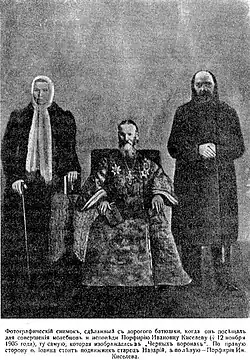John of Kronstadt with the leaders of the Ioannites sect, to the right of the archpriest - Matryona Ivanovna Kiseleva (Porfiriia), to the left - Nazarii Dmitriev (starets Nazarii); photo Porfiriia confessed to John