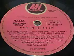 Porsuigieco is the only album by PorSuiGieco, a supergroup consisting of Charly García, Nito Mestre, León Gieco, Raúl Porchetto and María Rosa Yorio, released in 1976. In the first edition of the LP, the song "Antes de Gira" was substituted for a censured song: "El fantasma de Canterville". But, in 1993, the album was released with "El fantasma de Canterville" as bonus track. The album was recorded in only two weeks.