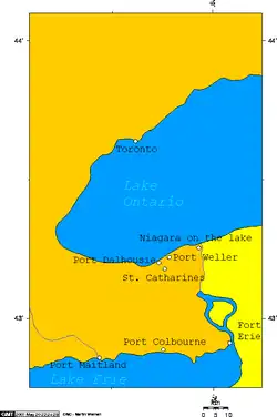Port Dalhousie, in relation to other nearby lakeports.