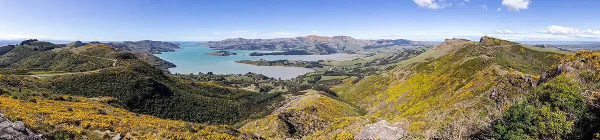 The volcano is one of two from which Banks Peninsula was originally formed 12 million years ago.[2] The area was first populated by Māori during the 14th century. During early European settlement some 500 years later the Port Hills presented a challenging barrier between the harbour and the planned settlement of Christchurch, their steepness and ruggedness making access extremely difficult. For many years the majority of settlers used the precipitous Bridle Path to transport themselves and their belongings to the plains on the other side. Today the Lyttelton road tunnel and a separate rail tunnel connect the port and the city suburbs, and three road routes crossing the range – via Evans, Dyers and Gebbies passes – are connected by the Summit Road.[3]