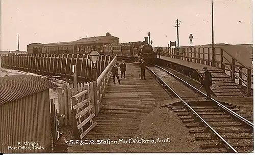 Port Victoria railway station is a disused station in Kent, United Kingdom, which opened on 11 September 1882 and closed in 1951. It was located at the head of a 400-foot (120 m) long timber pier reaching in the River Medway estuary.