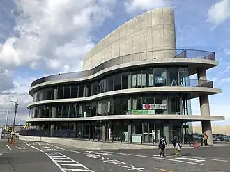 The waiting room is also a facility for taking refuge from tsunamis. There are a waiting room and ticket counter on the ground floor, a store and rest space on the second floor, and a restaurant on the third floor. A rooftop that height is 12.9m evacuation center from tsunamis.[8]