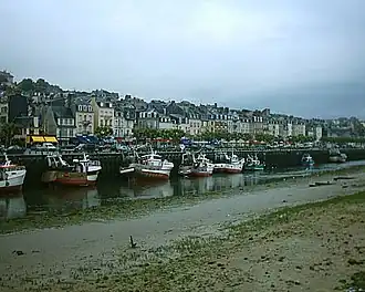 The docks of Trouville constitute a district within the city. It is situated on the River Touques, along the Boulevard Fernand Moureaux and downstream from the Pont des Belges. The main building on the docks is the fish market (marché aux poissons).
