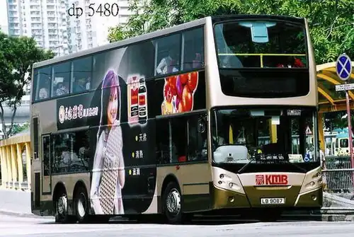 A double-decker bus operated by Kowloon Motor Bus (KMB)