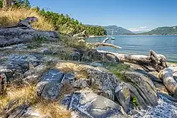 Portland Island is an island of the Southern Gulf Islands of the South Coast of British Columbia, Canada. It is located in the Salish Sea west of Moresby Island and off the south tip of Saltspring Island, adjacent to the main BC Ferries route just offshore from the terminal at Swartz Bay at the tip of the Saanich Peninsula. It was named after HMS Portland, the flagship of Rear-Admiral Fairfax Moresby, Commander in Chief of the Pacific Station 1850–1853.[1]: 214