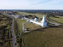 Portsdown Technology Park is located near Fort Southwick on Portsdown Hill. It is home to a number of defense companies including Qinetiq[20] and BAE Systems.[21] Within the park is a building featuring radar towers similar to a Type 45 destroyer,[21] which are visible to a wide area of Hampshire. The site is the former home of the Admiralty Surface Weapons Establishment. DSTL has a smaller site situated to the west of Fort Southwick.