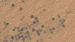 The farms are typically set up as centre pivot irrigation fields of around 0.9 hectares (2.2 acres) in size. Farms have up to 70 pivots but the majority of farmers maintain 5-10.[3]: 27 The pivot irrigation systems are locally made from aluminium and iron. They complete a full rotation in around 2.5–3 hours and supply water to the crops as a high pressure mist.[3]: 29 : 36 A single well can supply 2-3 pivots and irrigation is applied for 6–8 hours a day for Premiere season crops and 18 hours a day for Arrière season potatoes.[3]: 36 Most irrigation is carried out during the night; some farmers irrigate for 24 hours a day but this is rare due to the higher cost of electricity in the day.[3]: 36 The abstraction of water is gradually depleting the aquifers at El Oued.[3]: 37