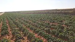 The area was traditionally used for growing date palm but potato production began in 1986 and by 2017 more than 30,000 hectares (74,000 acres) were under cultivation by 47,000 farmers.[3]: 11 : 27 [5] The region now accounts for 40% of all potatoes grown in Algeria, though tomato, melon, tobacco and grain are also grown at El Oued.[3]: 27 The main variety grown is Spunta and most farmers plant to the Arrière season, though in recent years some have switched to the Premiere season.[3]: 28