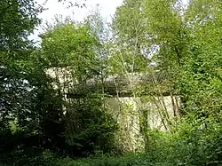 The local church, now abandoned, is dedicated to Saint George and belongs to the Parish of Senožeče.[3] The church was built in 1526 and remodeled in 1655. It has a rectangular groin-vaulted chancel, a wide nave with a stuccoed ceiling, and a squat belltower over the entrance.[4]
