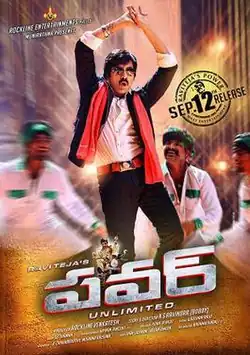 Before release of the Gopichand Malineni's directorial Balupu, Ravi Teja listened to the script narrated by K. S. Ravindra, one of the writers of Balupu and finalized the film as his next project.[2] Director cum producer Y.V.S. Chowdary, who produced Ravi Teja's Nippu in the past was announced as the producer of the film. The film was launched on 1 September 2013 at Y.V.S. Chowdary's office in Hyderabad.[3] But because of his financial problems, Y.V.S. Chowdary walked out of the project. Later prominent Kannada producer Rockline Venkatesh agreed to produce the film.[4] The film had a second opening ceremony on 11 December 2013 at Filmnagar in Hyderabad.[5] Kona Venkat, S. Thaman, Allan Amin and Gautham Raju were roped in as the dialogue writer, music director, fights choreographer and editor of the film respectively and coincidentally they all were a part of Ravi Teja's Balupu. Apart from them, Jayanan Vincent, Brahma Kadali and A. Kumar Varma were roped in as the cinematographer, art director and production executive of the film respectively.[6] The film's launch made headlines on 11 December 2013 (i.e. 11/12/13), a special calendar date that comes once in every 100 years.[7] The film's title Power was declared on 24 January 2014. Incidentally, it was the title for Ravi Teja's film under Meher Ramesh's direction which never took off.[8]