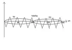 • Phase-Angle Control: Various circuits exist to implement a phase-angle control on different waveforms, such as half-wave or full-wave voltage control. The power electronic components that are typically used are diodes, SCRs, and Triacs. With the use of these components, the user can delay the firing angle in a wave, which will only cause part of the wave to be in output.[20]